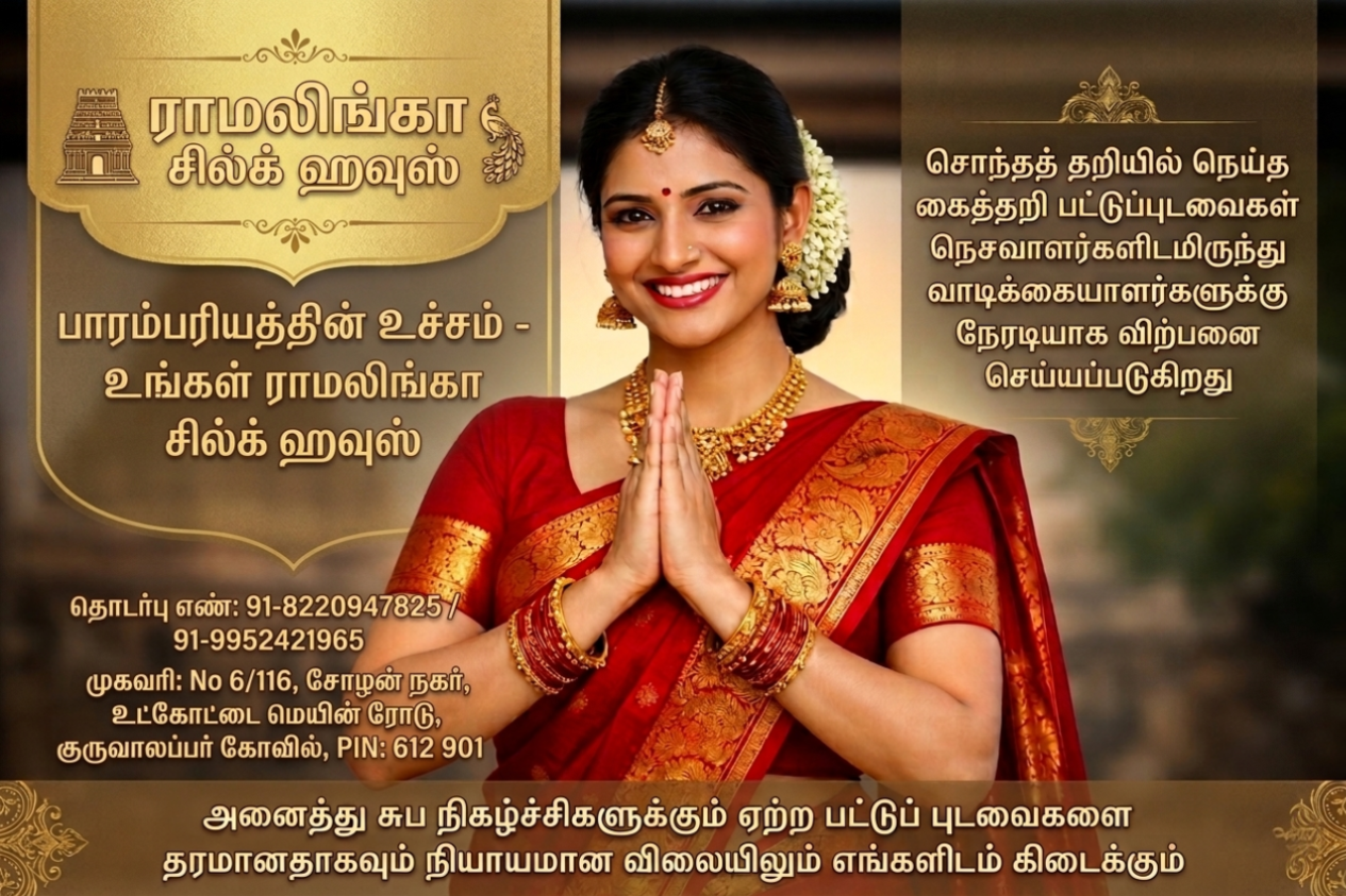 Posted on Google Shanmugam ShaTrustindex verifies that the original source of the review is Google. Good sarees collections...Posted on Google Elanchezhiyan STrustindex verifies that the original source of the review is Google. Nice ambience with variety of collections.Having a well experienced sales representativePosted on Google sivaram 71Trustindex verifies that the original source of the review is Google. ExcellentPosted on Google Soundhirarajan STrustindex verifies that the original source of the review is Google. Best hand looms silk sarees and contrast saft silk pattu sarees.Posted on Google barathkumar barathkumarTrustindex verifies that the original source of the review is Google. Superb collections....must try ..Posted on Google Saravanan AKSTrustindex verifies that the original source of the review is Google. Kalayanathukku pudavai edutthom.. romba nallarukku......Posted on Google Nagarathinam RajkumarTrustindex verifies that the original source of the review is Google. Good customer service and wholesale rate handbook sareesPosted on Google dhatcha yazhiniTrustindex verifies that the original source of the review is Google. Good collectionsPosted on Google Parama SivamTrustindex verifies that the original source of the review is Google. Good quality best rate hand made ExcellantPosted on Google Atchaya srinivasanTrustindex verifies that the original source of the review is Google. Beautiful collection of sarees with good quality and reasonable price. Loved the shopping experience 💕